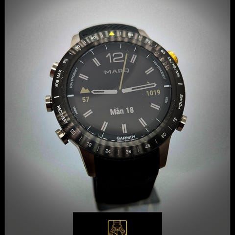 Garmin MARQ Aviator GPS Smartklokke med svart reim. Klokken har avanserte funksjoner for navigasjon og flyrelaterte data, samt en robust design egnet for luftfartsbrukere. Leveres i original emballasje med tilbehør og brukerveiledning.