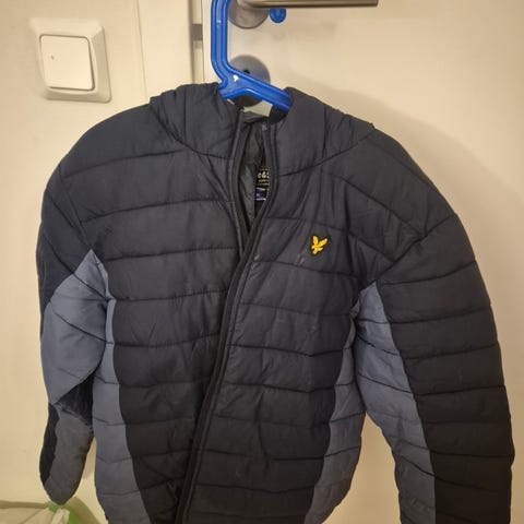 Svært pent brukt Lyle & Scott jakke, lett vattert med fleece. Jakken har hette, lommer med glidelås samt glidelåslukking i front. Ingen merker. Str. 12-13 år, ca 158- 164 cm.
