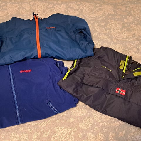 Selger en fin samling gutteklær i størrelse rundt 12–14 år.