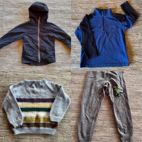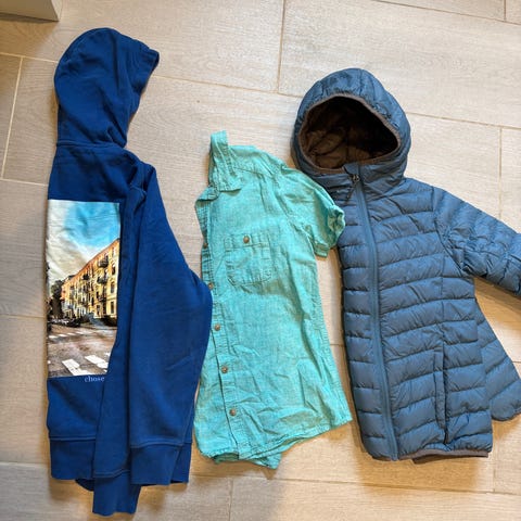 - Pufferjakke fra Kappahl str. 140 (avtagbar hette. Den ene hette knappen har gått i stikke. Se bildet på baksiden av jakken. Men masse brukt igjen.