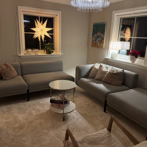 Selger en pent brukt sofa fra Bolia. Modellen er Caisa fire-person sofa med sjeselong på venstre side. Stoffet er Nantes light beige; ett slitesterkt stoff som ikke falmer i sollys, og ett av Bolias mest populære.