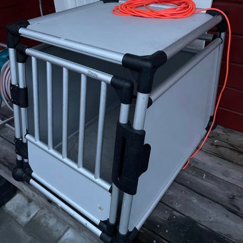 Transportbur til katt eller smådyr. Pent brukt, men mangler noen klemmer. Fungerer greit likevel.