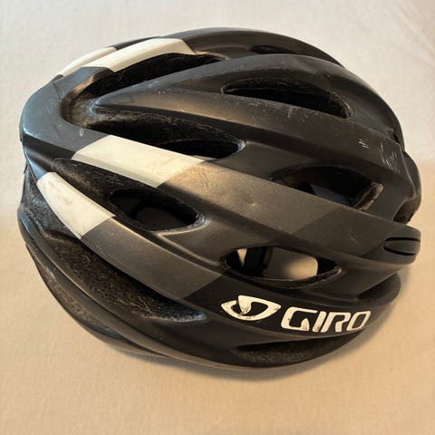 Svart Giro sykkelhjelm i god stand selges. Størrelsen er 50-57 cm, og det tilsvarer omtrent 9-12 år. Prøv den gjerne på om dere bor i Oslo.