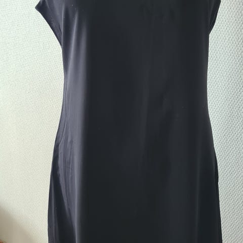 Sort kjole med fint snitt og detalj foran i livet - med tilhørende underkjole