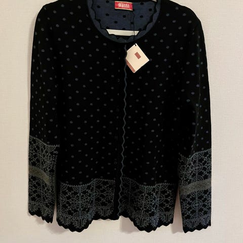 Oleana Blå Jakke og bukse laget av 75% merinoull og 25% silke. Jakken er i størrelse L for kvinner. Materialkombinasjonen gir varme og komfort. Jakken har doble knapper og detaljer i kontrastfarge.