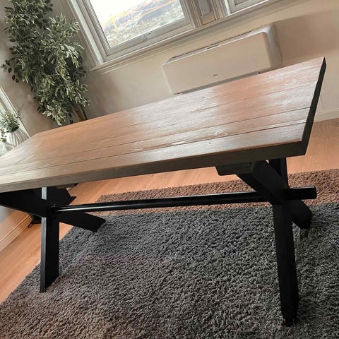 Godt brukt stue bord gis bort. Bordplaten er litt slitt under dekor plasten og ellers.
