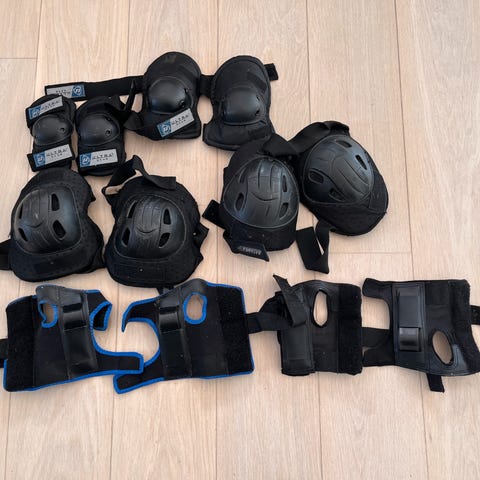 Flott, og nesten ubrukt, beskyttelsessett fra merket Rollerblade selges. Størrelsen er M, og sønnen min brukte det da han var rundt 10 år.
