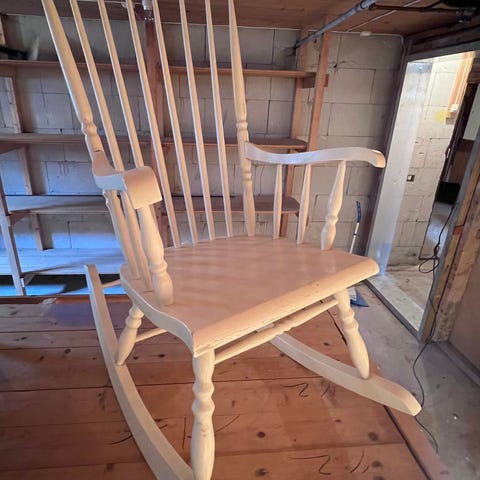 Koselig, eldre gyngestol dette - med fine detaljer på ben og ellers.