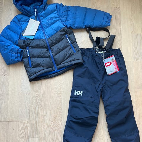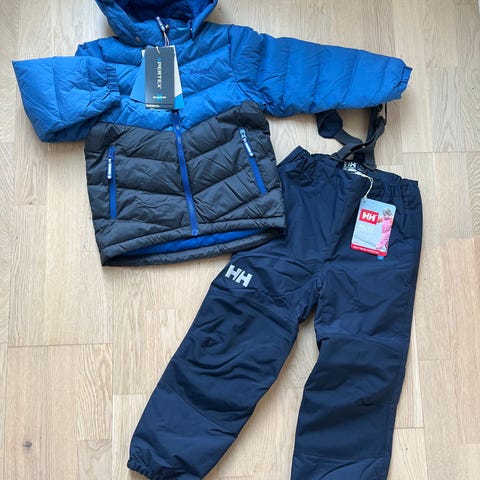 Bergans dunjakke 110 og Helly Hansen vinterbukse 110