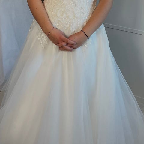 Kjolen ble kjøpt på Ski brudesalong sommeren 2025, og brukt i bryllup september 2025. Renset profesjonelt september 2025