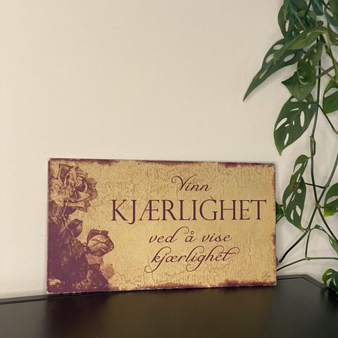 Pent metallskilt ca 45 cm bredt.. rustikk utseende så har noen rustflekker. Hel og fin.. har hull i hjørnene for oppheng. Aldri vært hengt opp hos meg.