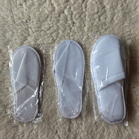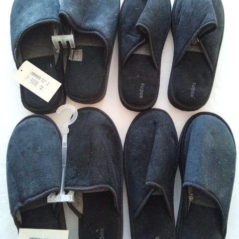 Ubrukte slippers/tøfler fra hoteller og fly