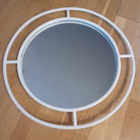 Rustikk speil - antagelig smijern - flott dekor eks. i en utestue el. Tungt. Bredde 55 cm, høyde 30 cm. Tør ikke prøve å sende dette. Må hentes.