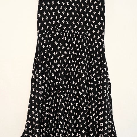 Masai kjole. Svart med dyp rosa stripe fra nakken og ned (se bilde). Størrelse S. Laget av 95% viskose og 5% elastan. Mykt deilig stoff. Har lange ermer og lommer foran. Vaskes separat og bør formes i våt tilstand. Produktet er produsert i Portugal. Sendes mot at kjøper betaler frakt.