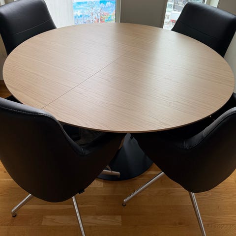 Bordet kan lett utvides fra 6 til 10 sitteplasser ved hjelp av glideskinner under. (Se bilder)
