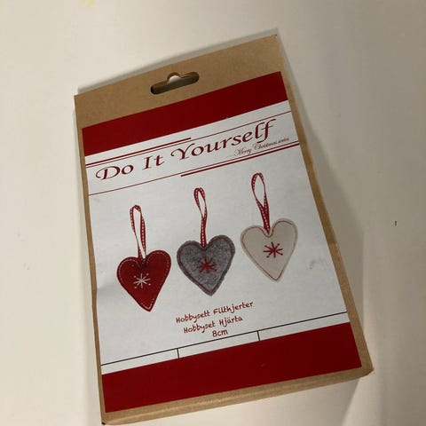 Nye, håndbroderte og ferdig monterte jule pynt.