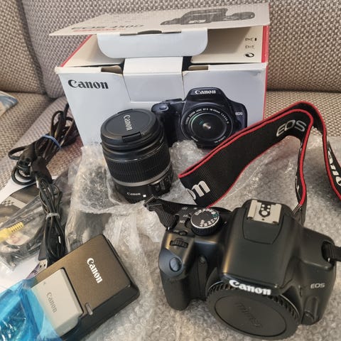 Selger et Canon EOS 450D speilreflekskamera i god brukt stand. Perfekt for nybegynnere som vil lære foto med et ordentlig kamera, eller som rimelig backup.
