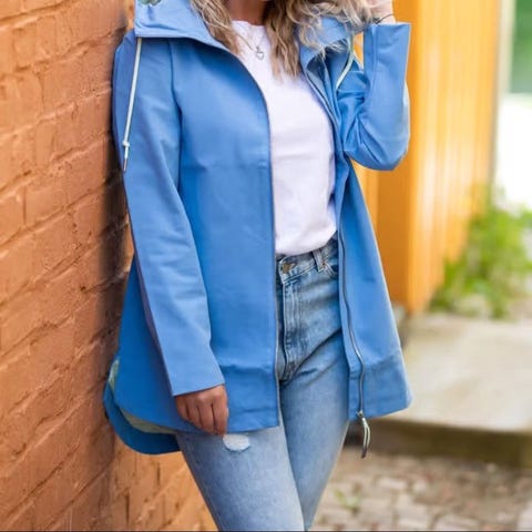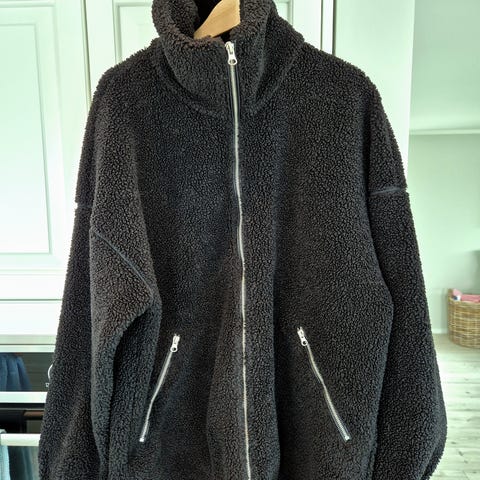 Johaug Andre jakker i størrelse M for kvinner, farge svart. Jakken har en myk, teksturert overflate og glidelåslommer foran. Den har en frontglidelås med lysere detaljer og ribbestrikket kant rundt halsen. Egnet som ytterplagg i kjøligere vær.
