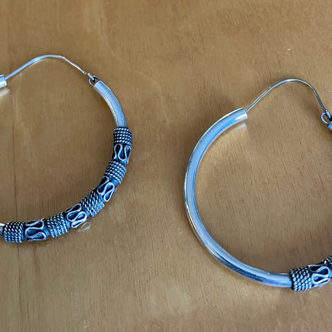Store kreol hoops i testet sølv , håndlaget ,17 gram, 5 cm i diameter.