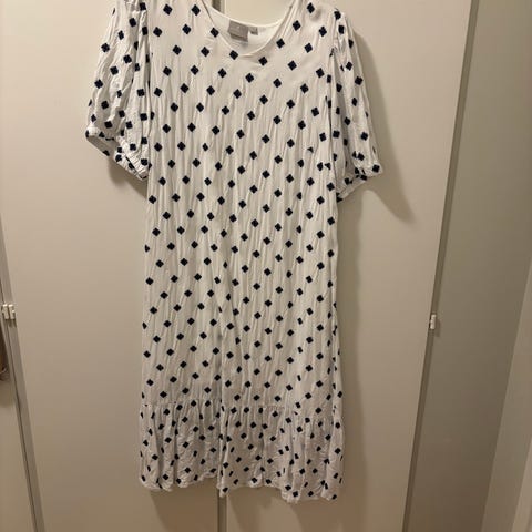 Kul jakke/kjole fra Bitte Kai Rand i str 3 - stor i størrelsen og jeg tenker den tilsvarer ca xxl. Brukt som jakke et fåtall ganger. Chiffong som er foret med sort jersey stoff.