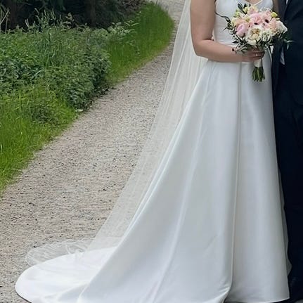 Selger den vakreste brudekjolen Pronovias Keoni. Kjolen er elegant, tidløs og samtidig gir den prinsessefølelsen. Den er brukt én gang i mai 2025 og den er i perfekt stand og har vært på grundig rens.