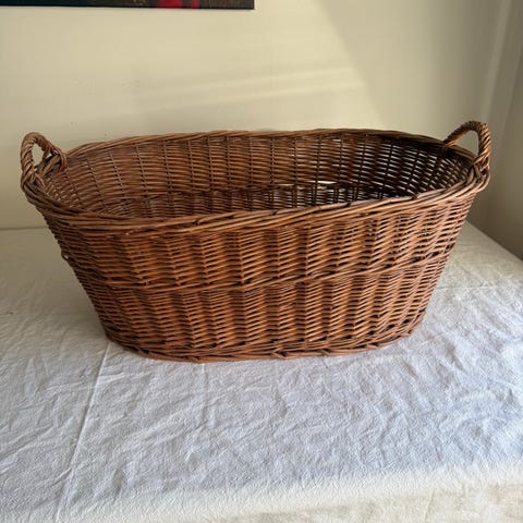 Stor & romslig kurv i gråbeige farge selges til kr. 250. Denne er lite brukt og har stort sett stått lagret på en hytte. Solid og kraftig flettet, fargen er litt "vasket" gråbeige. Allsidig kurv som egner seg til mye forskjellig av oppbevaring. Mål: 44 x 32 cm, H 23 cm. Sender gjerne hvis mottaker betaler frakt (ikke FiksFerdig).