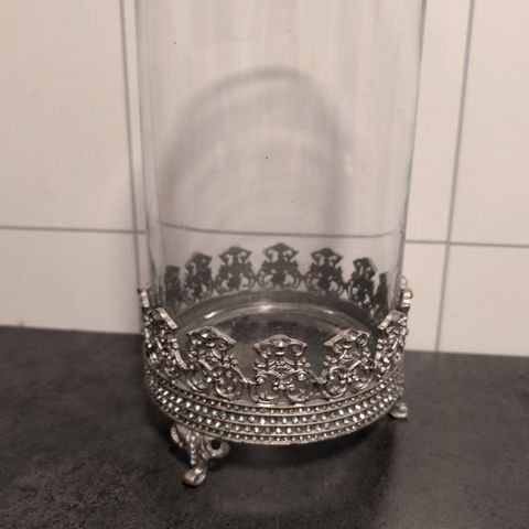 Selger en dekorativ, hengende lysholder i lysmetall med to glassholdere og hengende prismer. Den gir et lunt og stemningsfullt uttrykk, og passer fint i vindu, over et lite bord, i en utestue, vinterhage eller i et koselig hjørne inne.