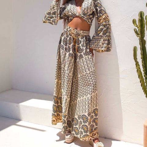 Beigesett (topp + bukse med sleng)