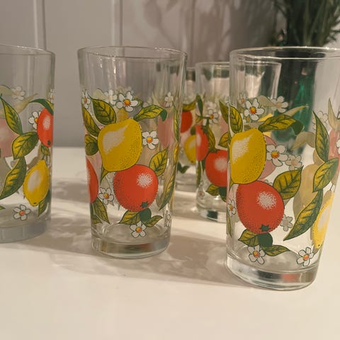 kule retro gule og røde glass selges samlet kjøkkenglass, vannglass
