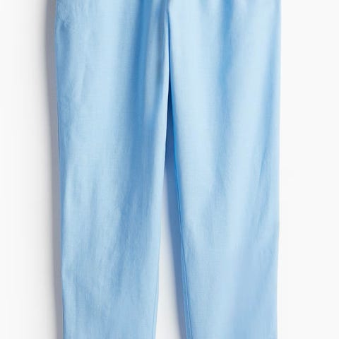H&M lin bukser i størrelse S, hvit farge. Laget av lin og viskose materiale. Bukser med elastisk midje og snor for justering. Passer til damer.