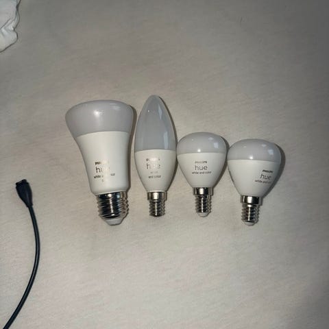 Selges pent brukt. Tre stykk GU10 Zigbee pærer i lampen, så disse kan byttes.