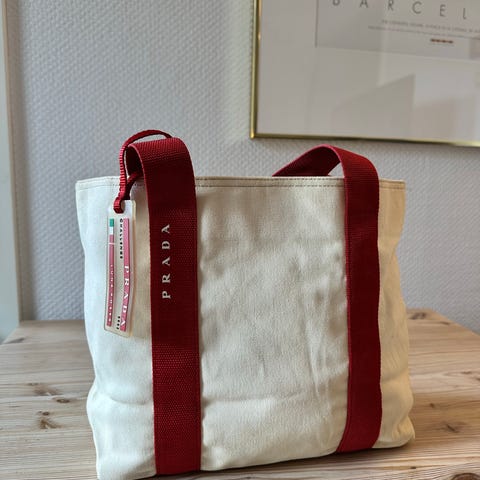 Prada Stoff Dame Veske i svart materiale. Vesken har to skulderstropper og en glidelåslomme på innsiden. Innvendig foring med Prada-logo og merkeetikett. Laget i Italia.