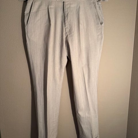 Utvidet litt i bena for en mer klassisk look, og lagt opp i bena med 4 cm opplegg, så den kan legges noe ned igjen om ønskelig.