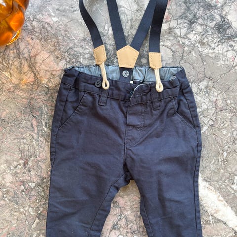 Newbie penbukse med seler i rutete grå og svart farge, størrelse 62 (2-4 mnd). Laget av mykt og slitesterkt materiale, designet for komfort og funksjonalitet.