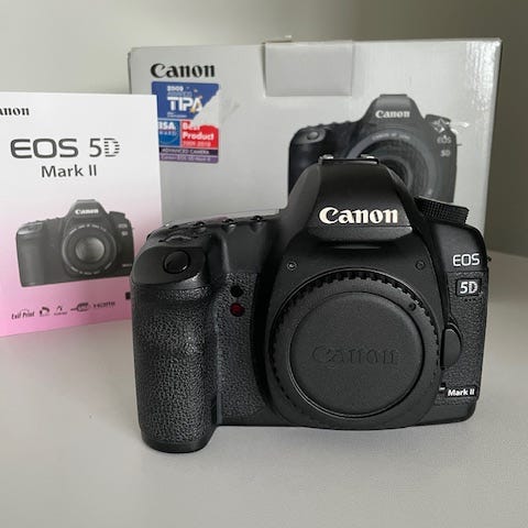 Canon 7D Mark II kamerahus, komplett med tilbehør i original emballasje. I tillegg følger det med 2 reservebatterier fra Duracell samt en original Canon blits. Kameraet er fra 2017 og er pent brukt. Har prøvd å finne shuttercount uten å lykkes, men det hadde stort sett ligget i esken inntil jeg kjøpte det brukt i 2023. Har blitt brukt til å ta amatørfotballbilder et par sesonger. Åpen for bud.