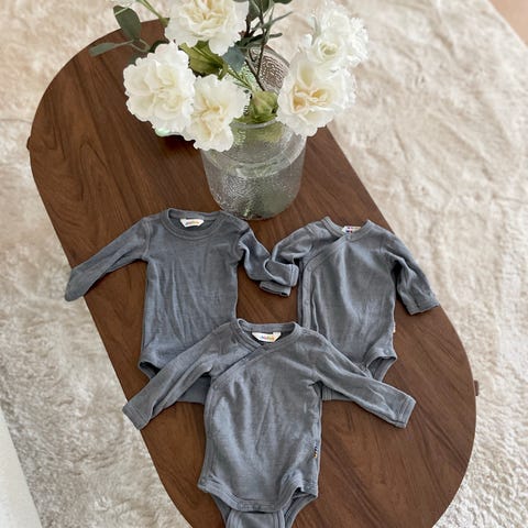 Bodyen har en flekk bak på ryggen jeg ikke fikk bort i vask, så den er med på kjøpet om ønskelig (si fra om du ikke vil ha den).