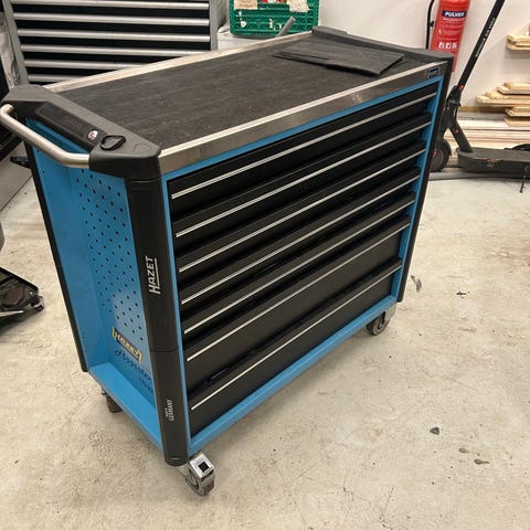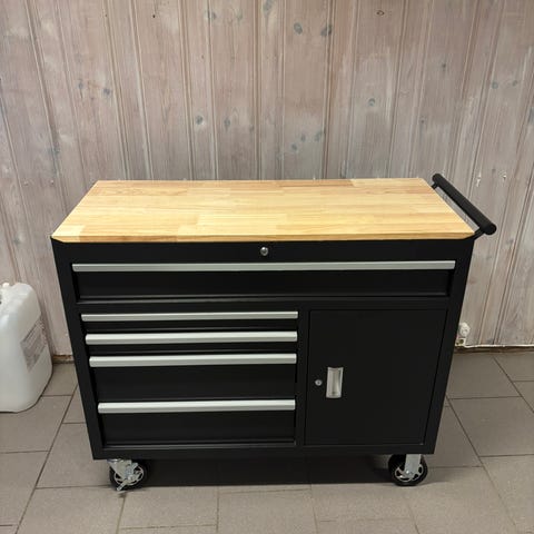 Lite brukt solid verktøybenk benkeplate laminat og hjul fra AJ Produkter.