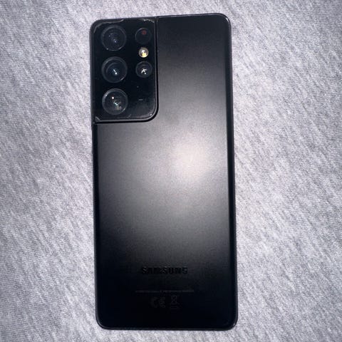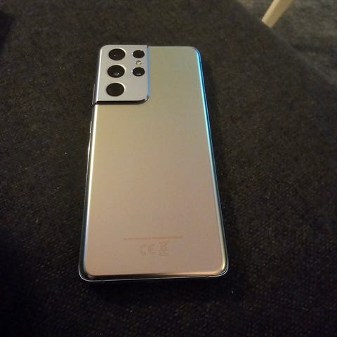 Samsung Galaxy S21 Ultra mobiltelefon med 128 GB lagringskapasitet og 12 GB RAM. Fargen er Phantom Silver. Modellen er SM-G998B/DS og er produsert i Vietnam. Telefonen har flere kameraer på baksiden og en stor skjerm på forsiden. Telefonen er i utmerket stand, både teknisk og visuelt, fra første dag, med en beskyttelsesfilm som aldri har blitt fjernet. Visuelt ser den nesten ut som ny. Den har blitt brukt svært forsiktig. Batteriet holder godt på ladningen. Settet inkluderer telefonen, et fint herreveske og originalemballasjen. Laderen er ikke inkludert. Utmerket pris for en slik telefon, så ingen pruting.