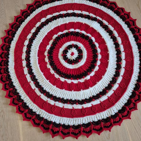 Gulvteppe heklet i dobbelt bomullsgarn. Passer både på stua, badet eller hvilket som helst rom. Maskinvaskes på 40 grader. Porto i tillegg