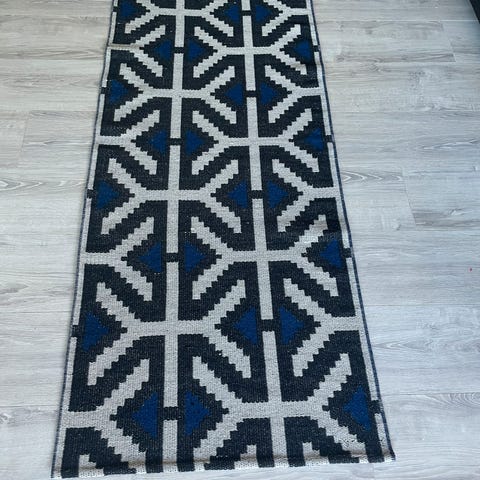 Gulvteppe heklet i dobbelt bomullsgarn. Passer på alle gulv. Maskinvaskes på 40 grader. Porto i tillegg