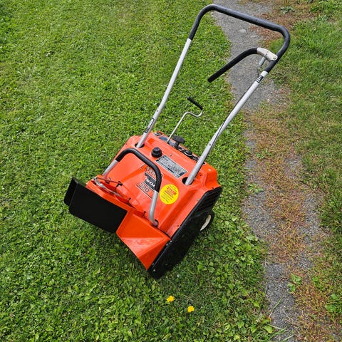 Liten og lett. Får ikke start, men er nok lett å fikse for en kyndig person. Utkaster har fått seg en trøkk og må limes/plast sveises.