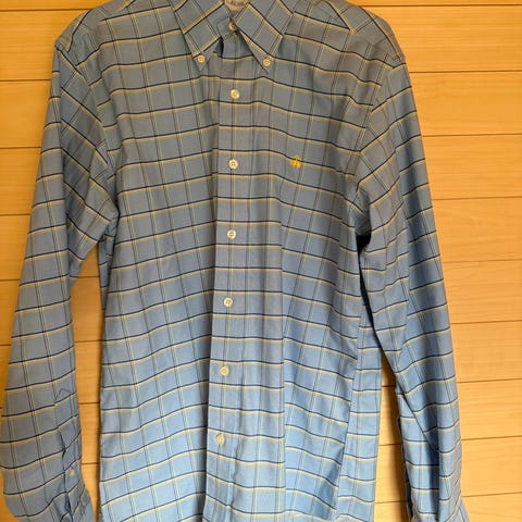 Brooks Brothers M Skjorte i grå farge, laget av bomull. Skjorten har knappelukking og er designet for menn. Slim fit-modell med original fold-detalj.