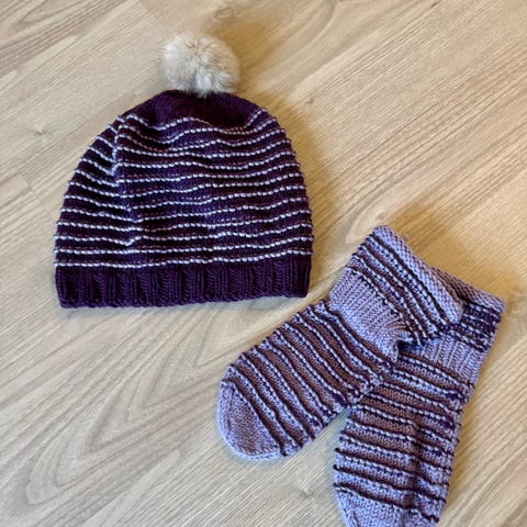 Luen og vottene er strikket i deilig ull som ikke klør.