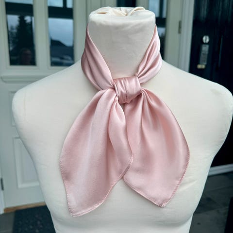 Flott rosa farge. Størrelsen er 68x68 cm som er riktig størrelse til bunad eller dress om man vil putte endene inn under vesten. Beste silke kvalitet. 100% silke. Veldig mykt og fin silkeskjerf. Jeg kan gjerne sende dette med posten for 46,-