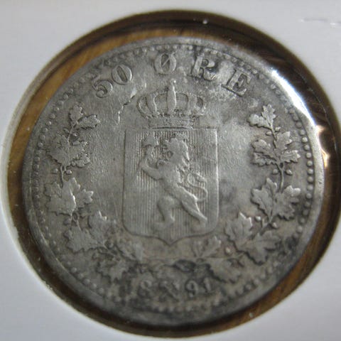 25 Øre Oscar II 1904 sølv selges kr 100.-+porto