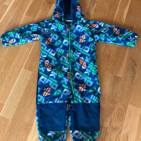 Softshelldress fra Skogstad i størrelse 80. Har fått noe misfarging/flekker som ikke er forsøkt fjernet. Praktisk strikk i livet. Intakte gummistrikker.