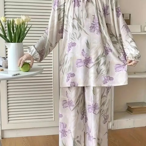 Buksen har strikk i livet, ingen lommer og korte ben. Overdelen har rund hals og korte armer. Stoffet er i polyester.