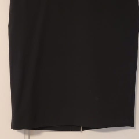 Svart skjørt i størrelse 42 for kvinner. Skjørtet har detaljer som kryssmønster foran, glidelås og knappelukking bak. Materialet er 60% ull, 38% polyester og 2% elastan. Egnet for formelle eller hverdagslige anledninger. Elegant og feminin ✨️🌹