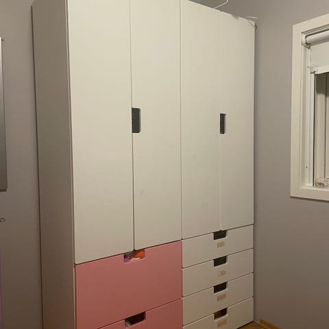 2xskap med klesstang og 2 trådhyller + 2 romslige skuffer i hver. (192,2 x 61,5 x 51,5 cm)