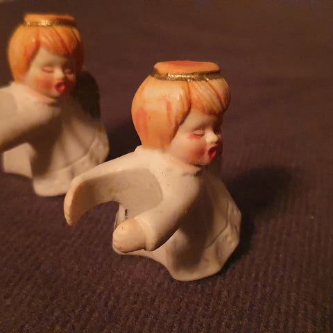Engel korgutt? Metall, retro, ca 7,5 cm høy